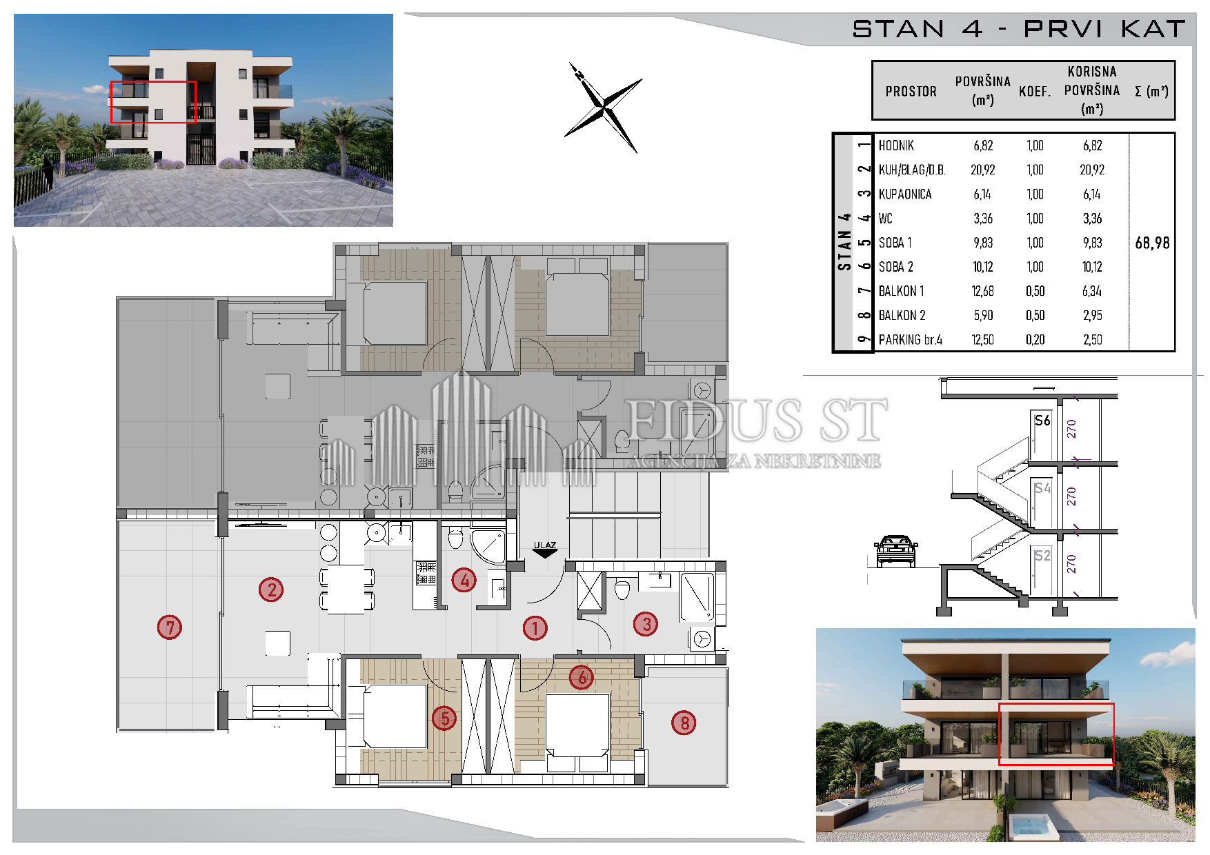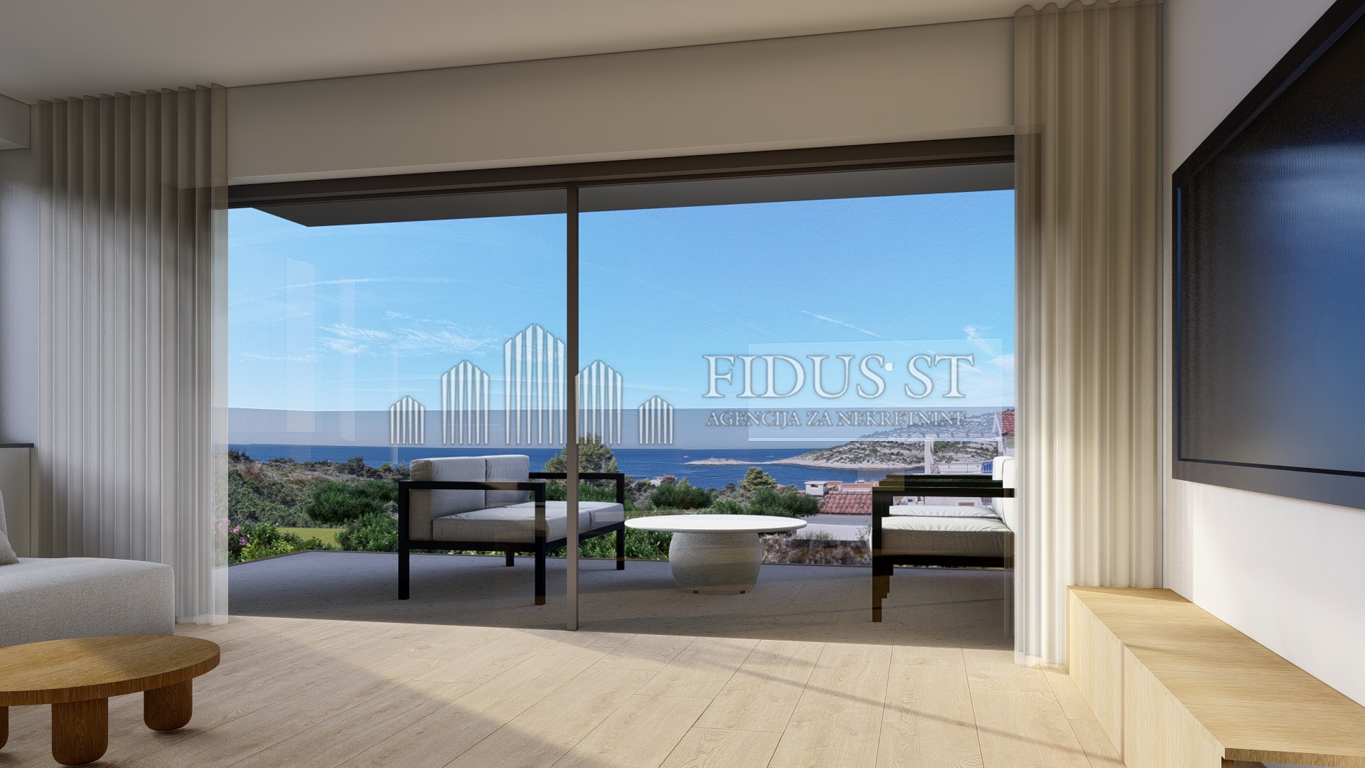 STIVAŠNICA, PUNTA PLANKA, ekskluzivna novogradnja udaljena 100m od mora. Dvosoban komforan stan površine 69m2, 1.kat, vlastito parking mjesto, pogled na more, EC-A+, useljenje početkom 2027.godine. Vrhunska kvaliteta gradnje i opreme na izuzetnoj lokaciji sa otvorenim pogledom na more.